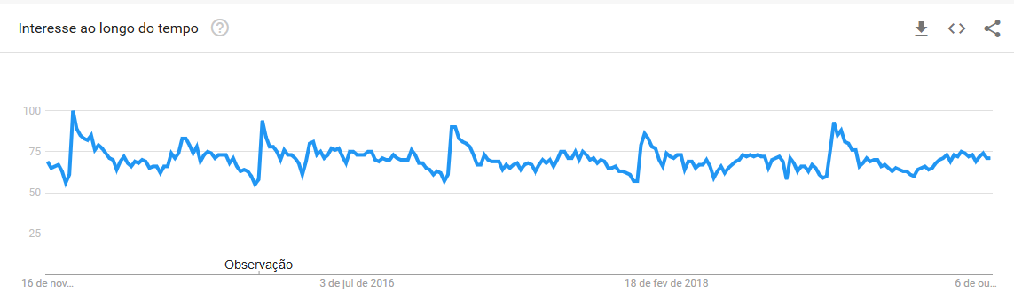Pesquisa por “academia” no Google. O ápice do gráfico é sempre na metade de janeiro. (Fonte)