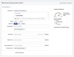 Segmente seu público por localização, idade, gênero, interesses etc. (Facebook).