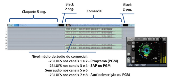 - comercial com trilhas de vídeo e áudio, de acordo com a duração contratada junto ao comercial;