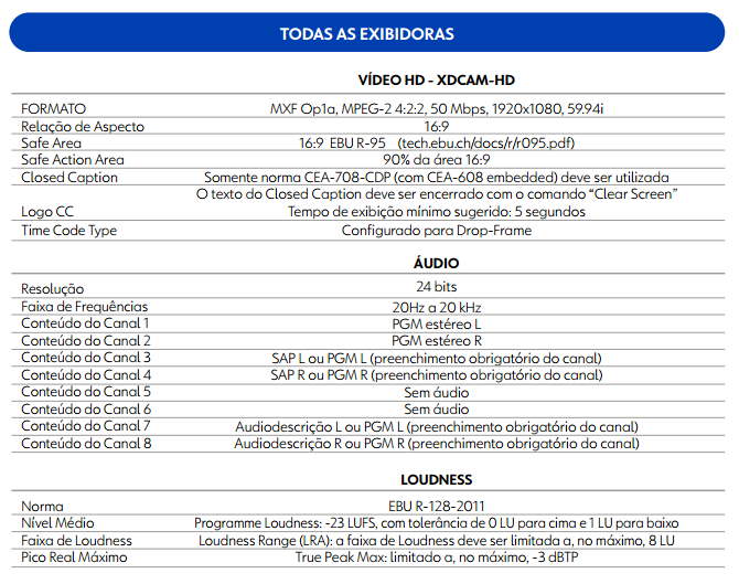 Detalhes técnicos para entrega de materiais em vídeo. (Globo)