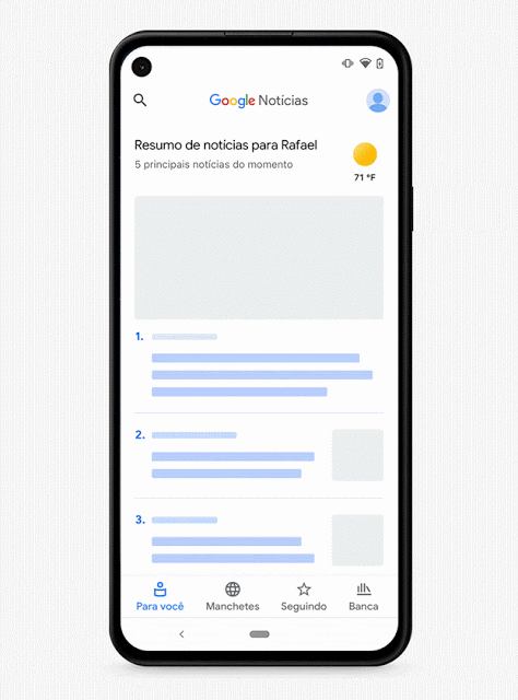 Para aproveitar esses recursos, o usuário só precisa seguir o veículo no Google Notícias. Acompanhe o NSC Total por lá e fique por dentro de tudo que acontece de mais importante em Santa Catarina. Vale lembrar, no entanto, que o Google Destaque por enquanto aparece apenas para usuários de Android.