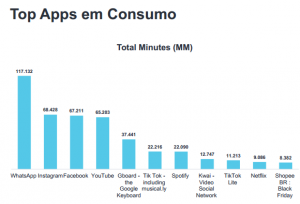 Tempo de consumo por aplicativo segundo a Comscore. (Fonte: Tendências e Comportamentos Digitais 2021)