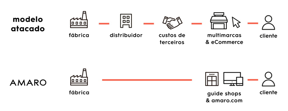 Modelo de venda direto para o consumidor da Amaro. (Fonte)