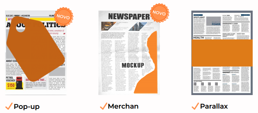 Exemplos de formatos de anúncios disponíveis para causar alto impacto no público.