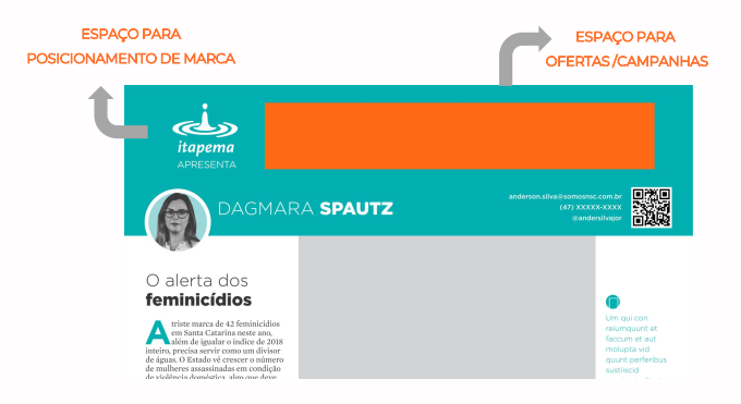Exemplo de espaço para patrocínio nas colunas impressas.