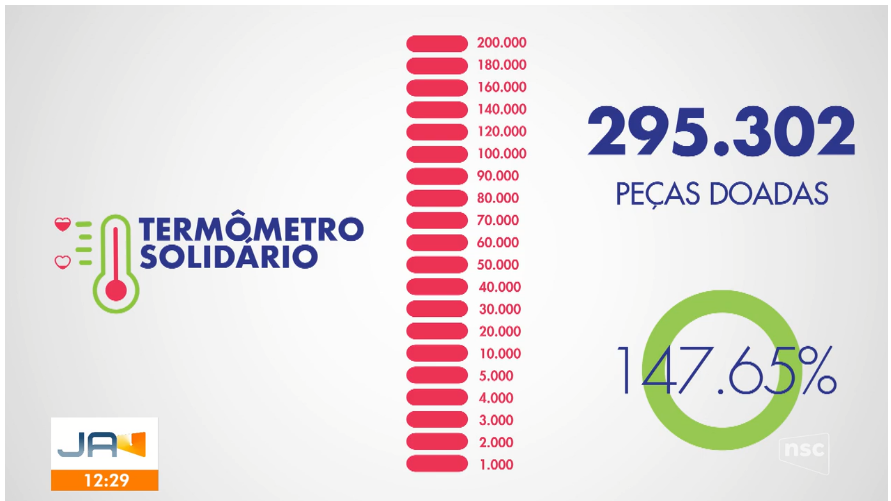 Meta e total de peças arrecadadas no Termômetro Solidário 2021. (Reprodução NSC TV)